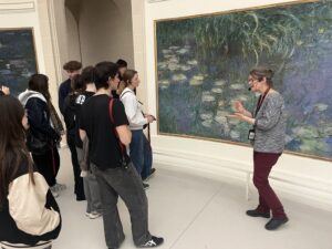We also visited the L’Orangerie to see Monet’s waterlilies. It was quite a surreal experience as we got to see these gigantic paintings installed in large oval rooms. Our guided tour explained how Monet was a significant artist in the Impressionist movement, and that when we see his work there isn’t much visible detail up close but, from further away you start to notice the details and shifting light.